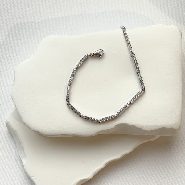 Ασημί βραχιόλια από ατσάλι με zircon . Λαμπερά & με minimal αισθητική .