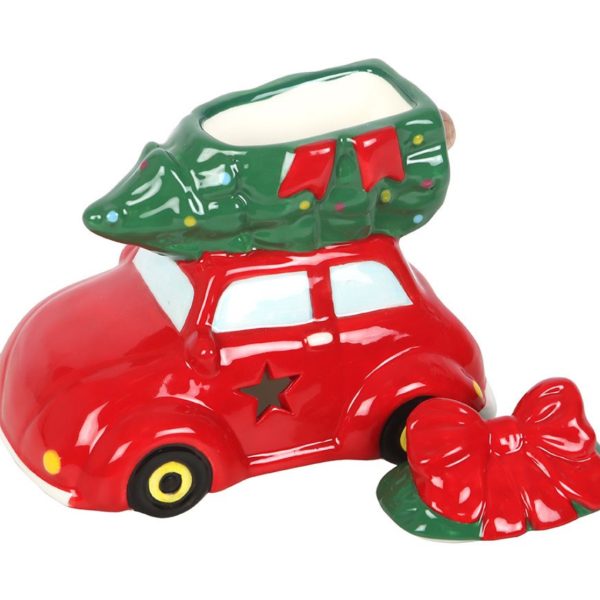 Ο κεραμικός αρωματιστής σε σχήμα κλασικού κόκκινου αυτοκινήτου που μεταφέρει ένα χριστουγεννιάτικο δέντρο θα δώσει μια vintage γοητεία στο σπίτι
